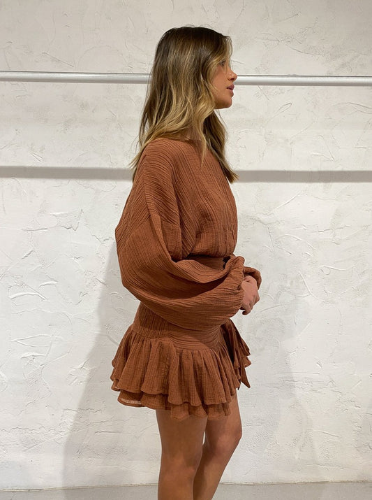 The EXCLUSIVE Issy Blaze Dress in Sienna is the playful mini moment for your special Coco moments.