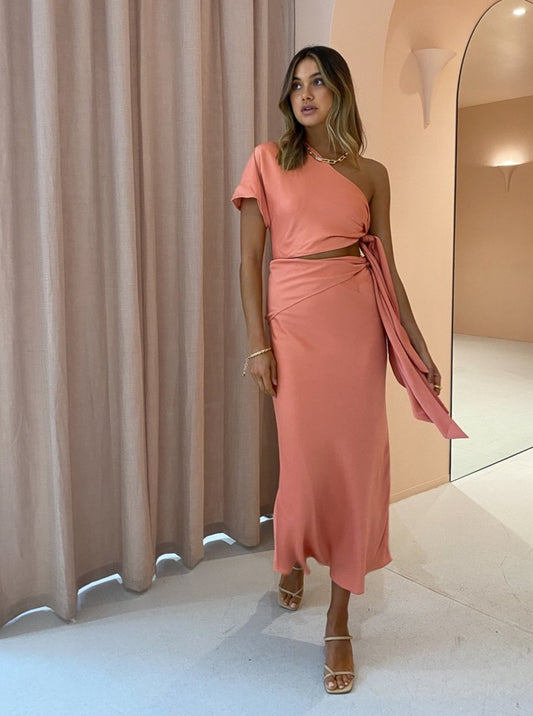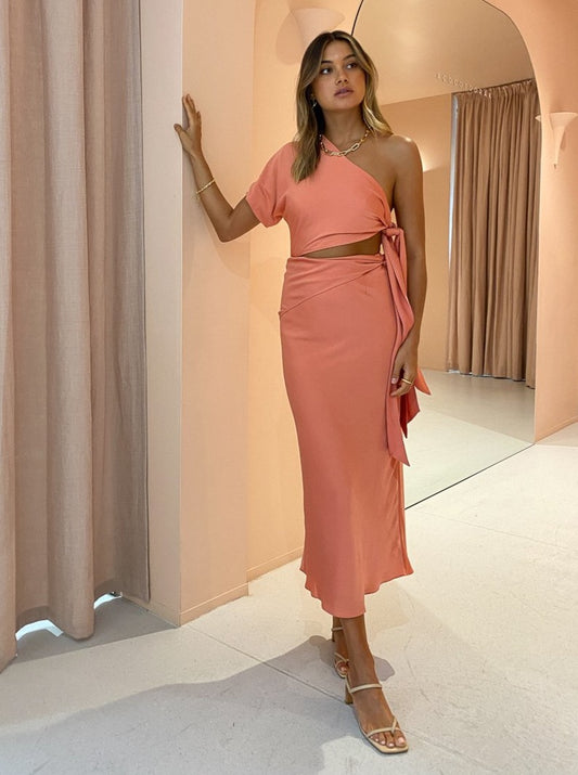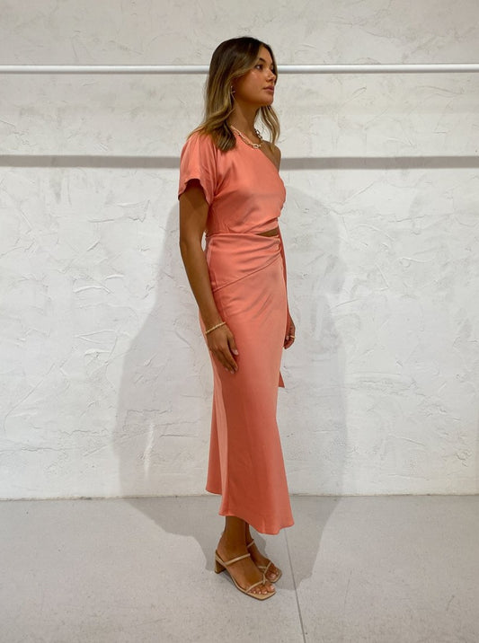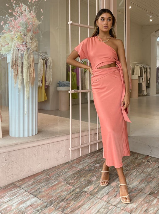 Introducing the exclusive Issy Mona Dress in Coral Pink.