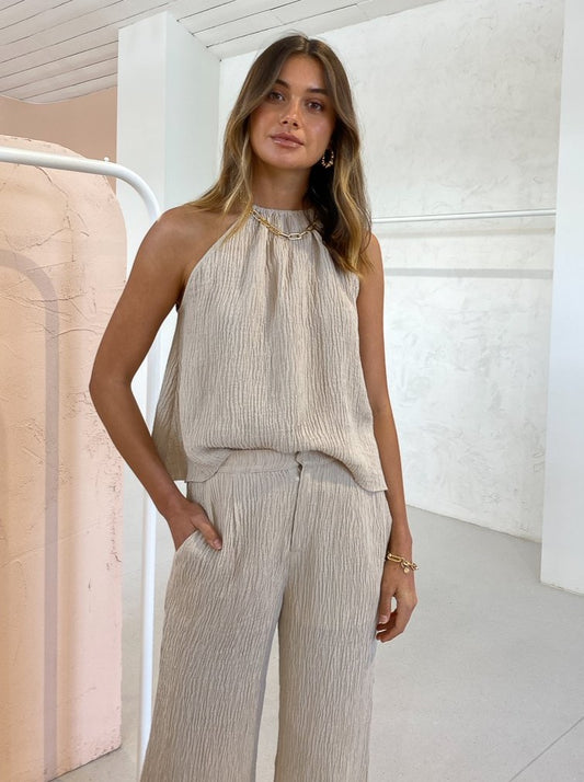 The exclusive Issy Shoreline Pants in Oatmeal is an essential for your Coco wardrobe.