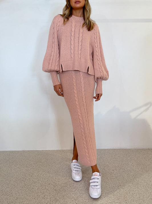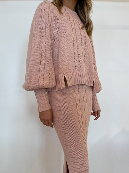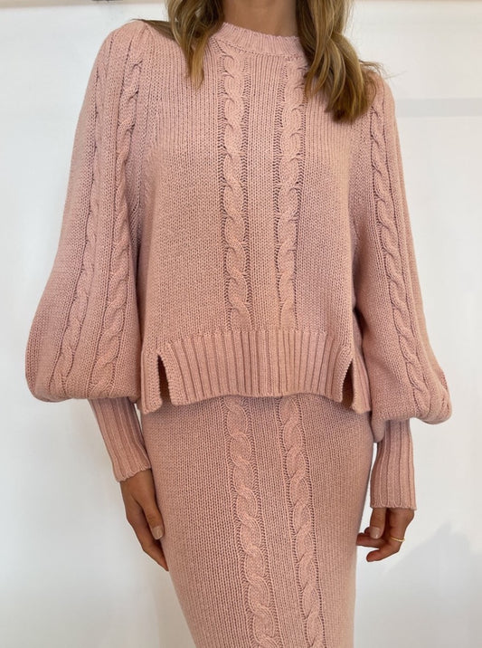 Designed using a warm yet breathable merino wool and cotton blend, the Hadley Knit jumper is made for the romantic with voluminous bell-sleeves, delicate cable knitting throughout and ribbing detail around the neckline, cuffs and hemline.