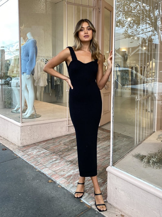 The Joslin Skye Cotton Knit Dress in Black is a classic investment style for your wear on repeat LBD wardrobe.