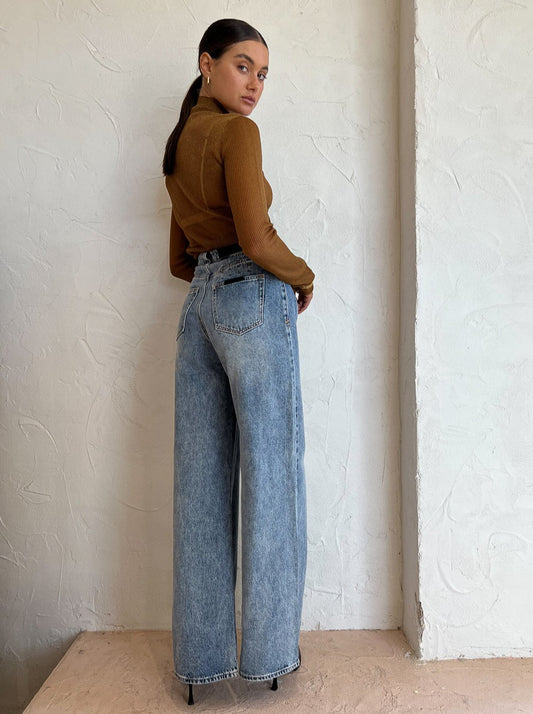 Falling in a wide leg fit, these long line jeans will become your favourite for desk to dusk days.