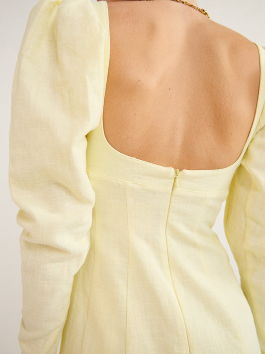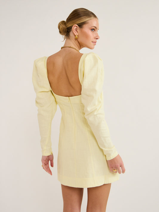 With the fitted silhouette, and fresh limoncello hue, this mini dress is perfect for romantic birthday celebrations, spring occasions, and cocktail hour.