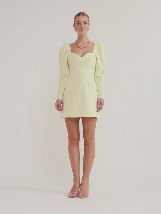 Clea Leyla Embroidered Mini Dress in Limoncello