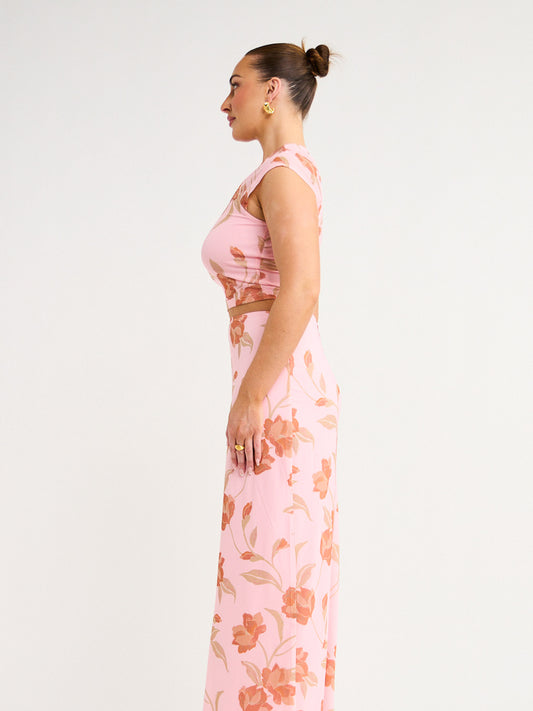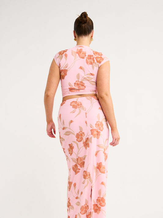Embrace your feminine side with the exclusive Lissa Skirt in Pink Floral by Hansen & Gretel.