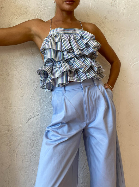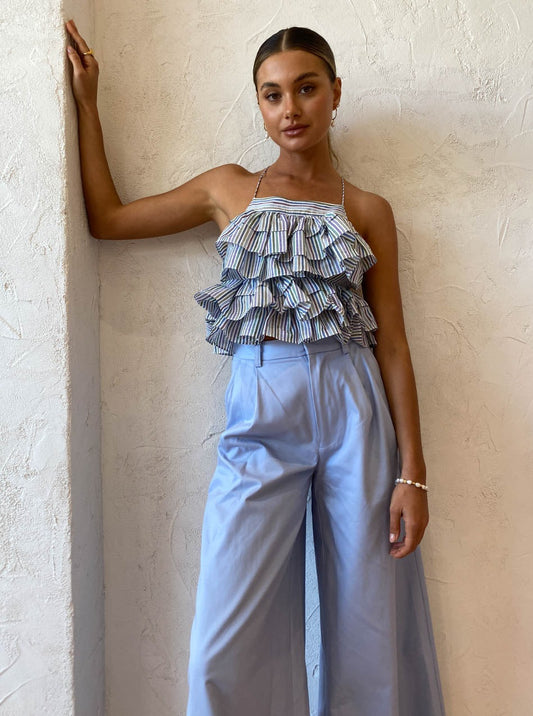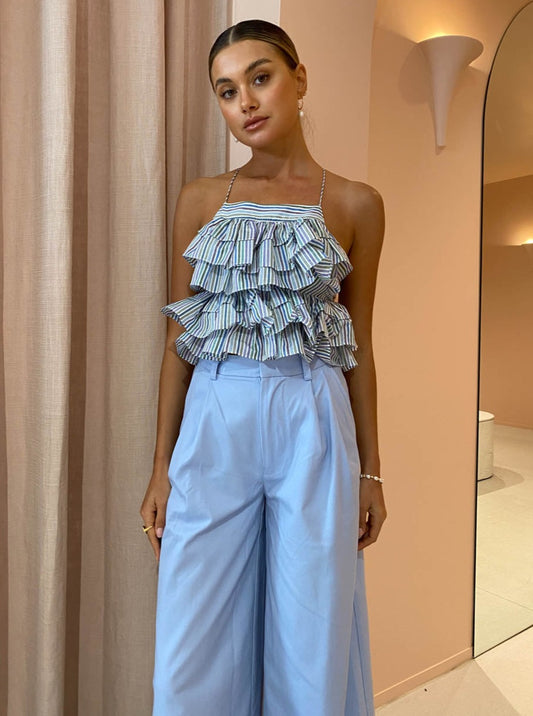 With the soft stripe complimenting the tiered silhouette, this top is coveted by Coco for adding modern femininity to any occasion.