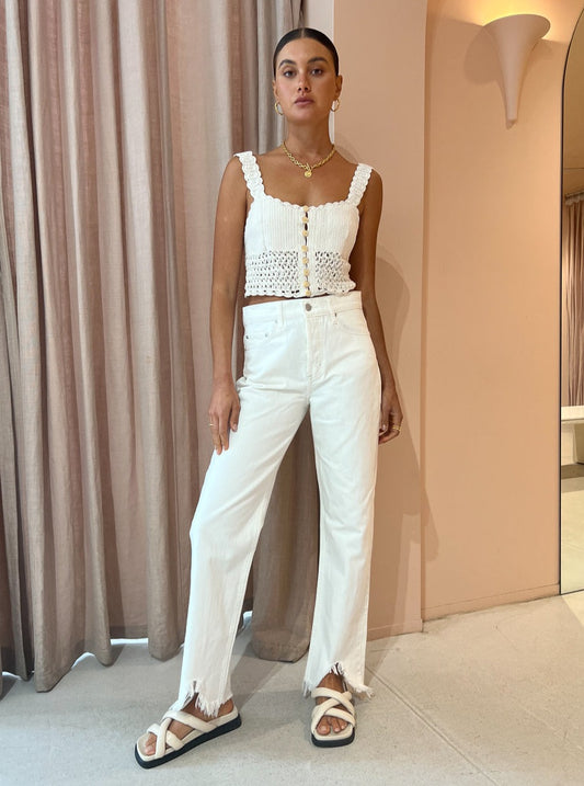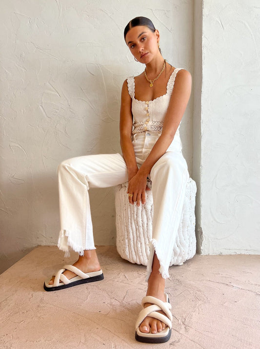Finish the look with the Nobody Agnes Jean in Chalk, Porter Triple Heirloom Ring in Gold, Amber Sceats Bella Earring GoldAloha Slip on Cross Sandal in White and the Brie Leon Grenada Necklace in Gold.