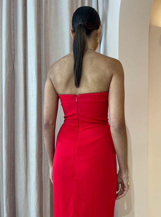 Manning Cartell Asymmetrical Games Strapless Gown in Scarlet