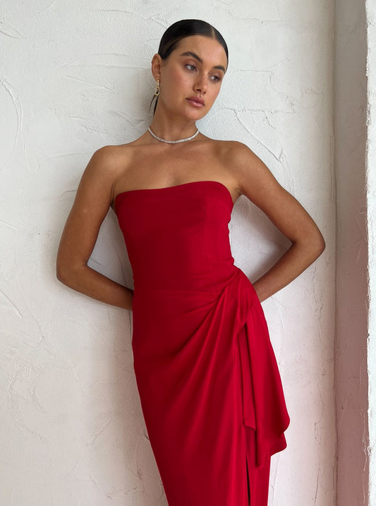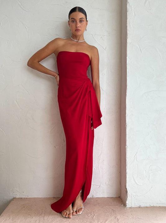 Coveted for its draw-dropping statement scarlet-red hue and floor-length silhouette, Coco girls can't wait to make a statement at their next formal soiree, cocktail occasion and black-tie events.