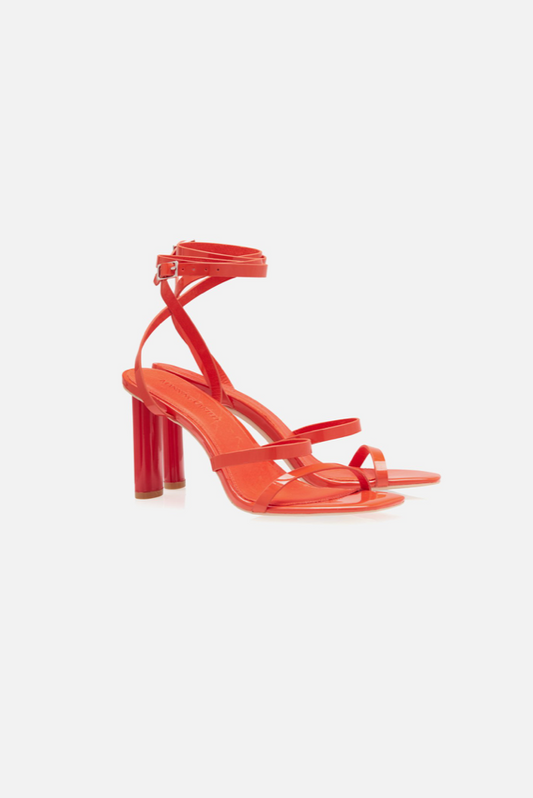 Pep you your wardrobe in the Manning Cartell Hyperreal Heel, which comes rendered in a vibrant poppy red hue ready for the upcoming warmer months. Constructed from glossy patent leather, this strappy pair has a modern, squared open toe and coordinating coated red heel, and fastens securely at the ankle.