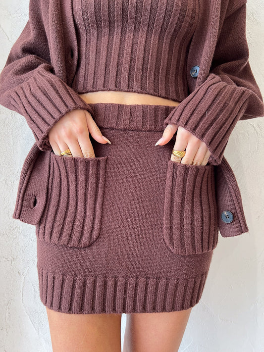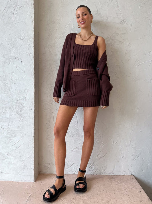 Mon Renn Hudson Knit Mini Skirt in Mahogany