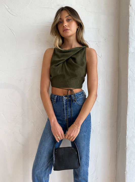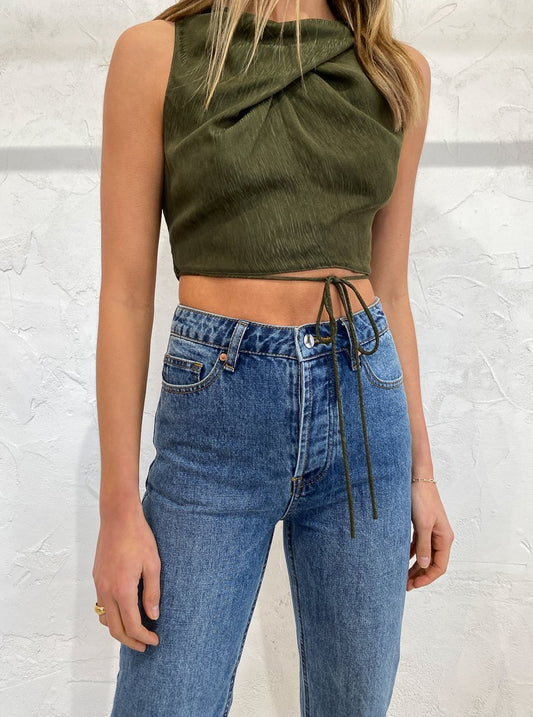 A Coco EXCLUSIVE, The Bijoux Crop in Okra from One Fell Swoop is a versatile and elegantly timeless piece for your Coco wardrobe.