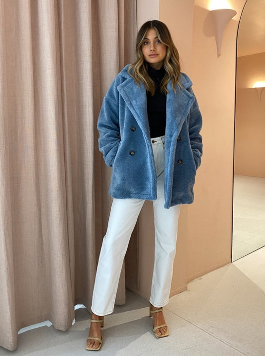 Delicately crafted with extra soft faux fur, the Brinsley Jacket is a double breasted longline style that will keep you endlessly warm.