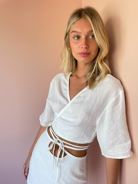 Designed in a lightweight linen, this crop features an adjustable wrap for your desired fit and everyday, easy wear.