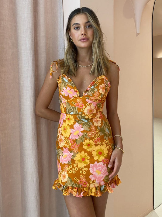 The Ownley Isla Dress in Summer Floral is the bold and feminine mini for those sunny days and balmy nights.