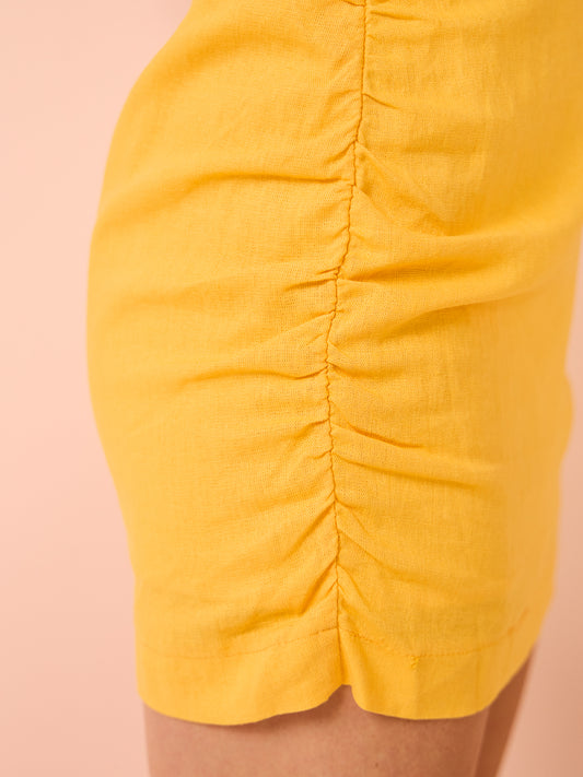 this dress exudes sophistication and femininity. Ideal for a luxury night out, look chic and stylish in this mango-hued dress.