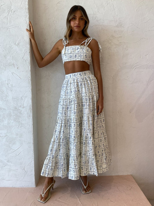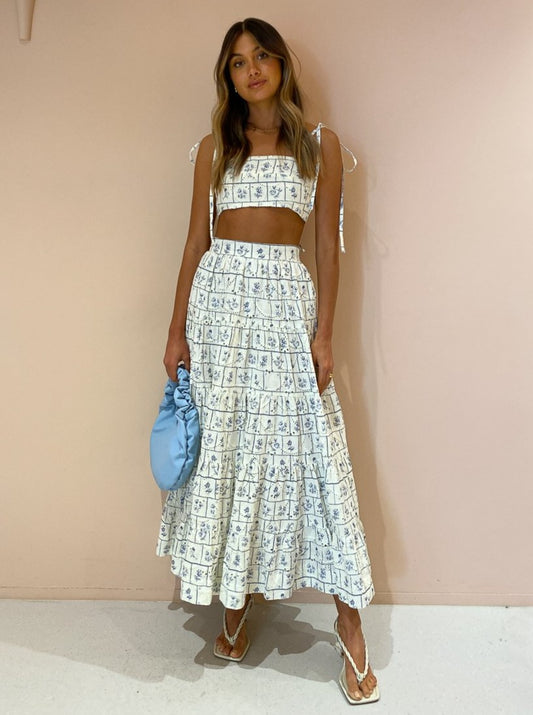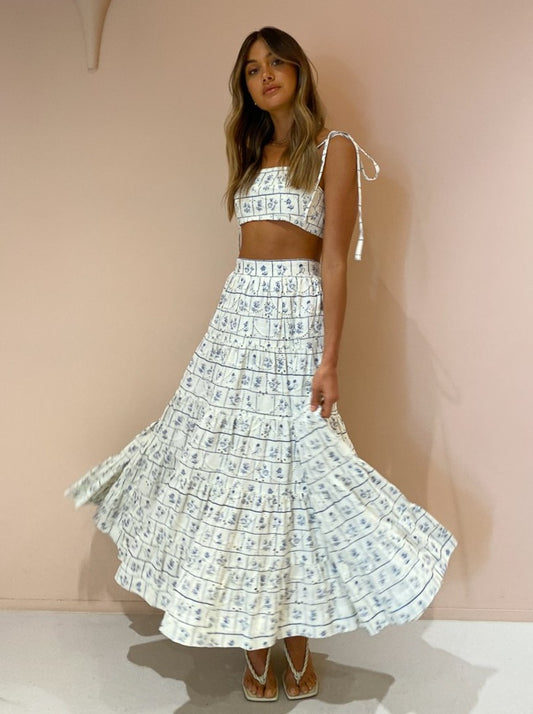 Touching out nostalgic hearts with its hand drawn European Piazza Tiles print, this maxi skirt can be perfectly paired with the Happy Hour Maxi Skirt in Piazza Print for sunset cocktails or styled over some swim for those sun-drenched beach days.