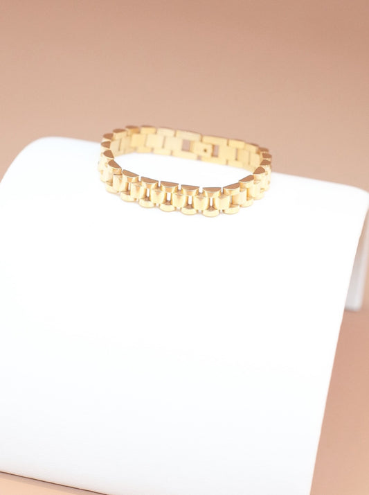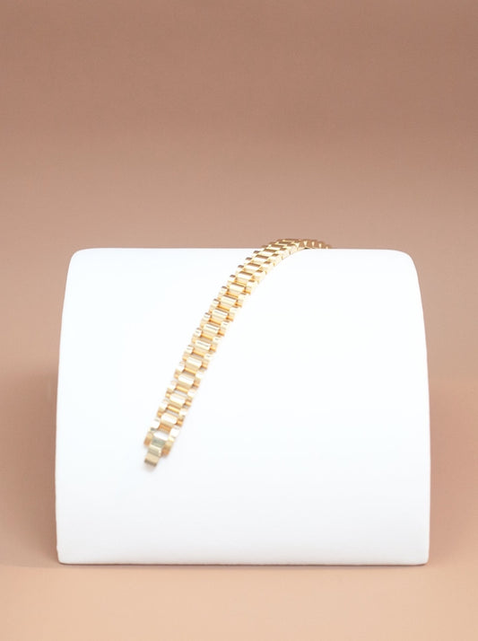 Lightweight, this chunky link bracelet is crafted from 18kt gold vermeil with a sterling silver base. 10mm wide, this bracelet has a streamlined clasp bringing sleek and refined styling to your wardrobe.
