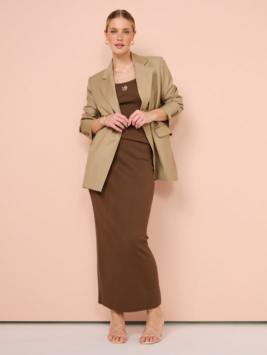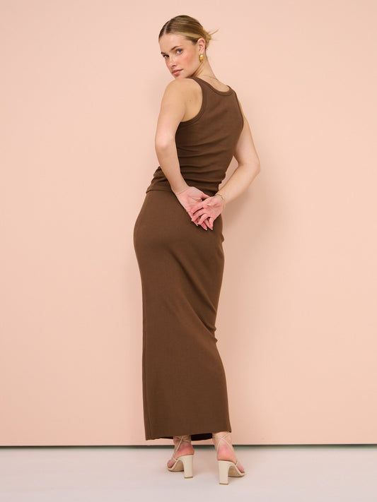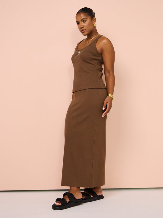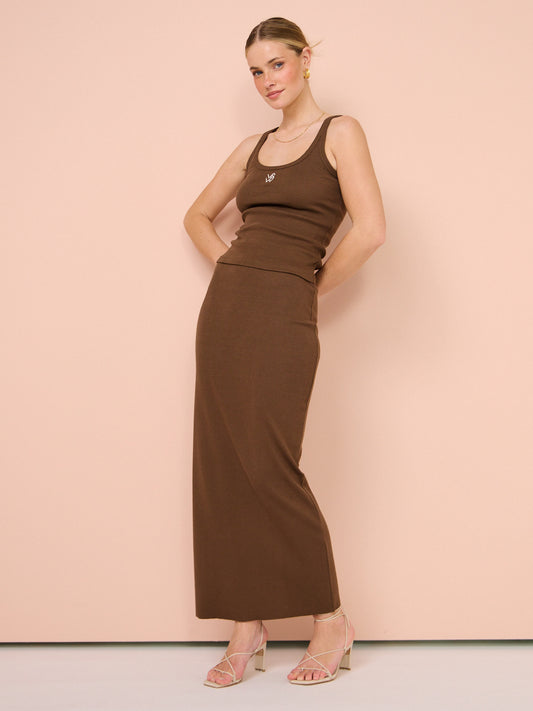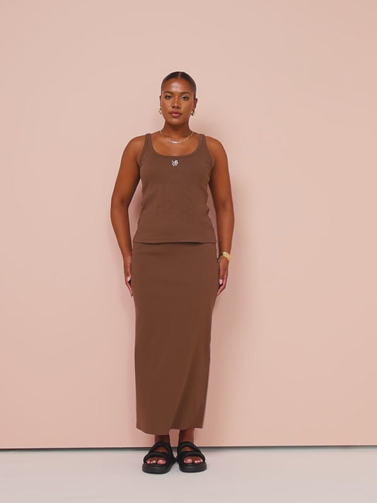 Introducing the Radiance Skirt in Walnut, an elegant and refined staple from Viktoria & Woods