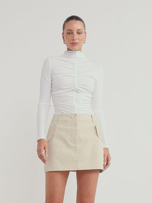 Falling to an A-line mini skirt, enjoy easy styling with this desk-to-dusk, weekend wear item – an everyday wardrobe essential.