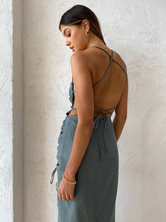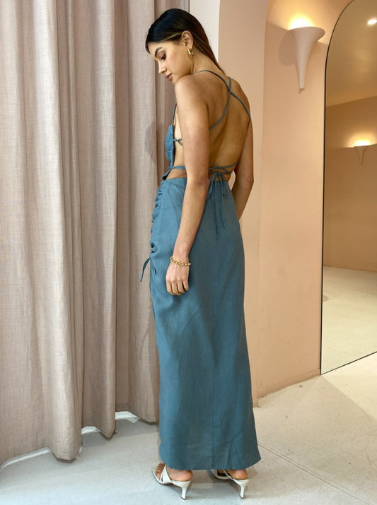 Designed to flatter and form, the Loulou Maxi is crafted from a lightweight and breathable Linen fabrication. Cut with a flattering structured square neckline, it is fitted through the bodice and straight silhouette skirt, featuring an adjustable side gather detail and thigh high side split.