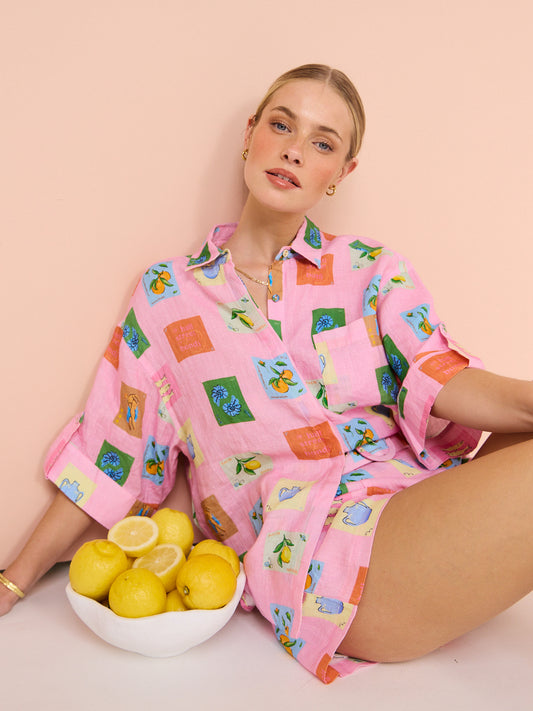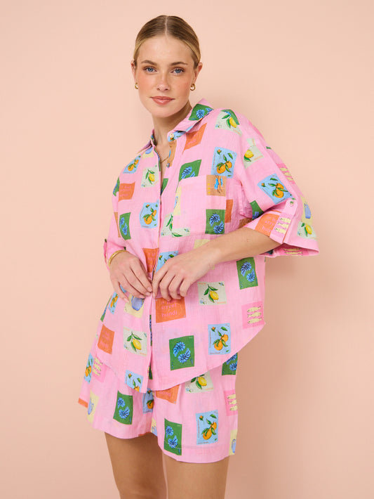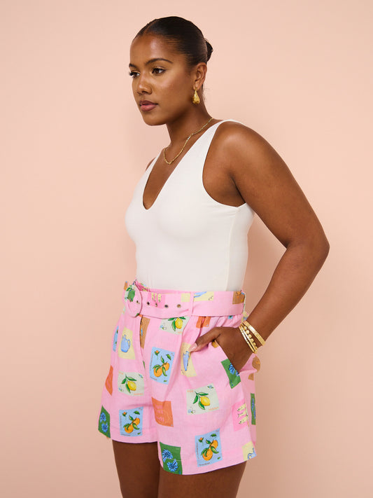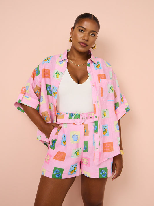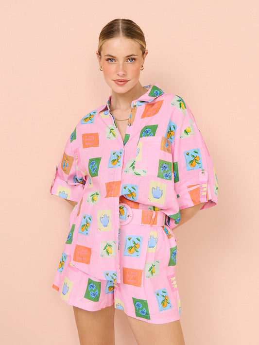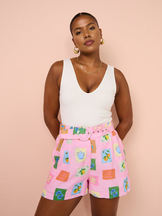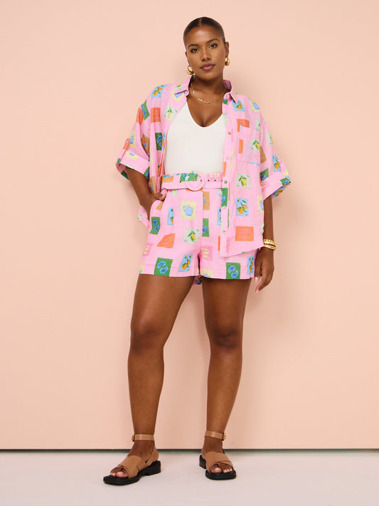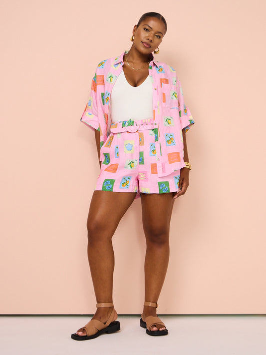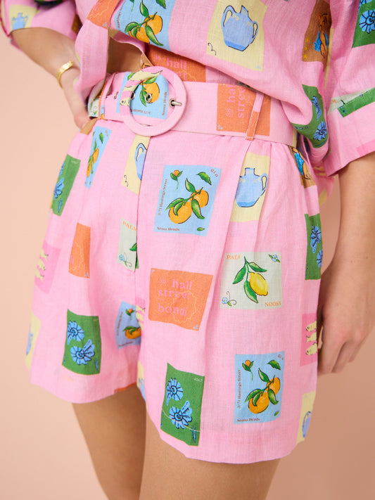 Elevate your weekend style with the Palm Noosa Rummy Shorts in Pink Emblem