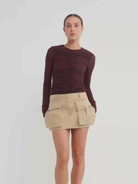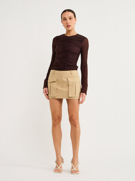 Shona Joy Sabato Low Rise Utility Micro Mini Skirt in Tan