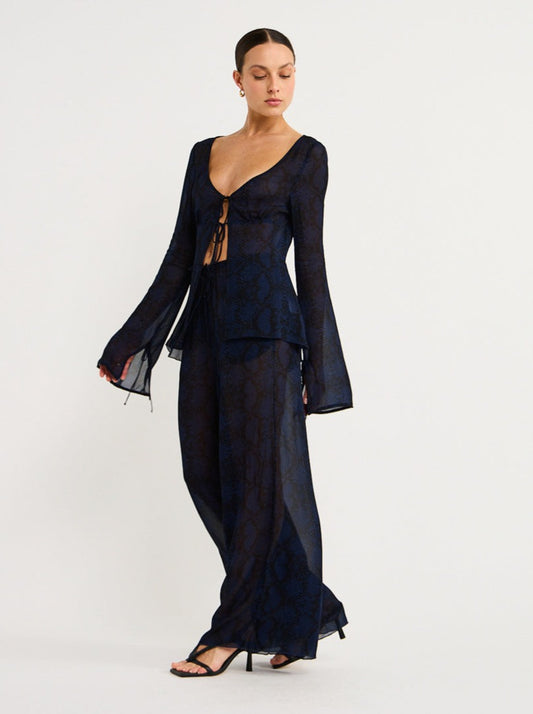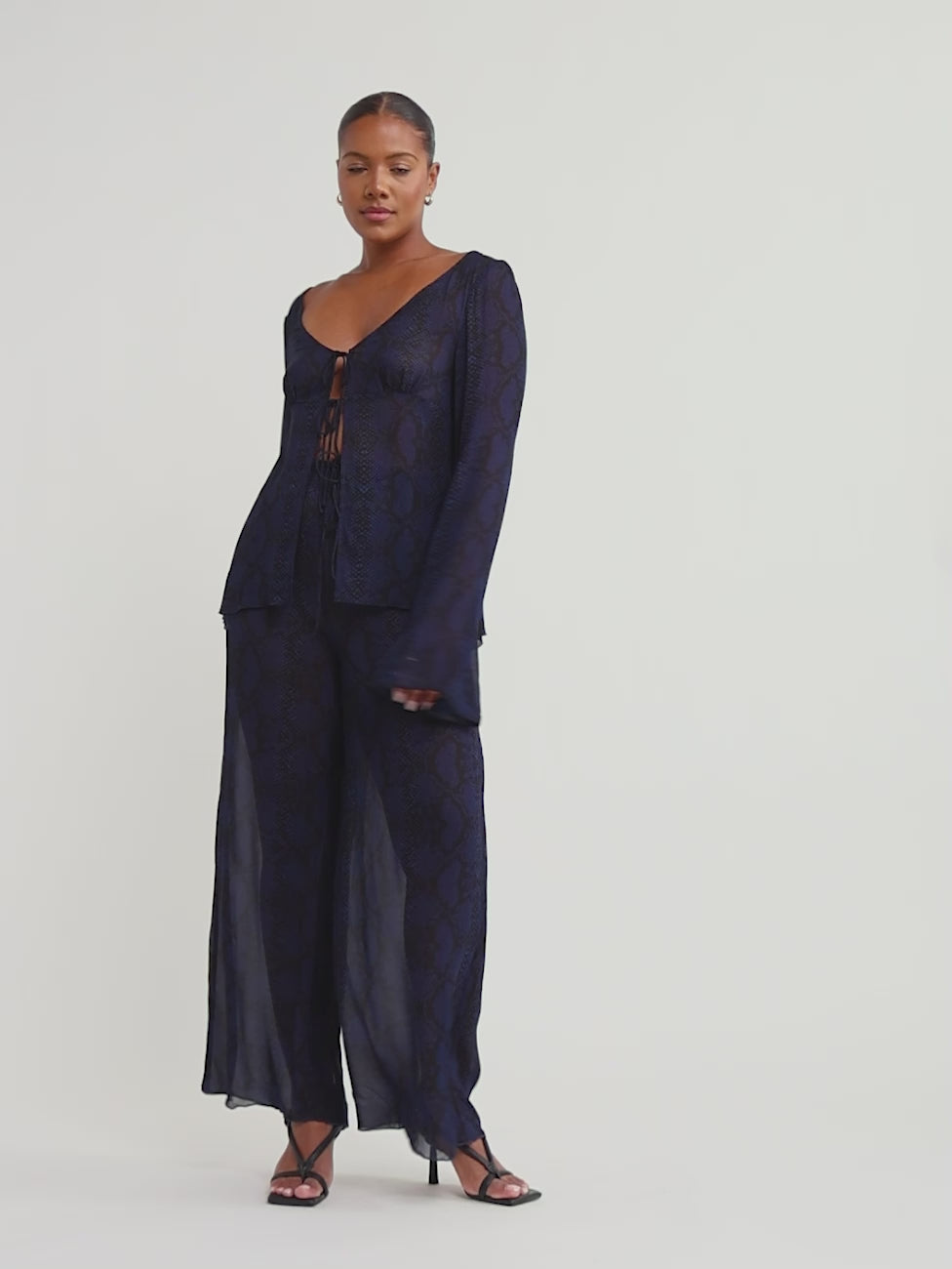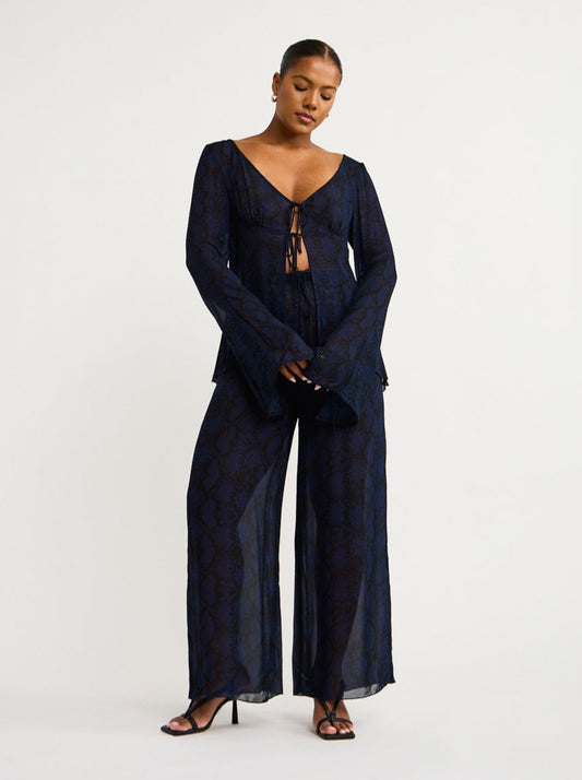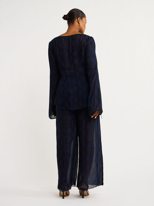 Isabelle Quinn Salome Drawstring Pant in Sapphire Snake