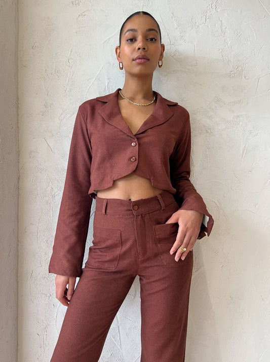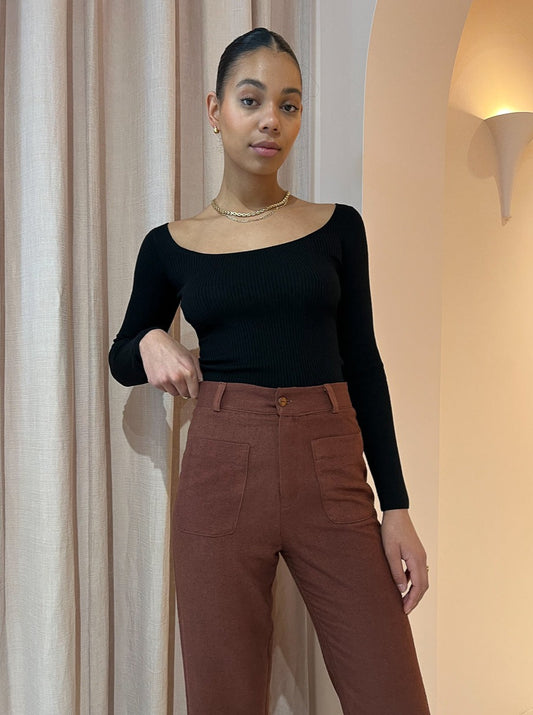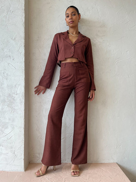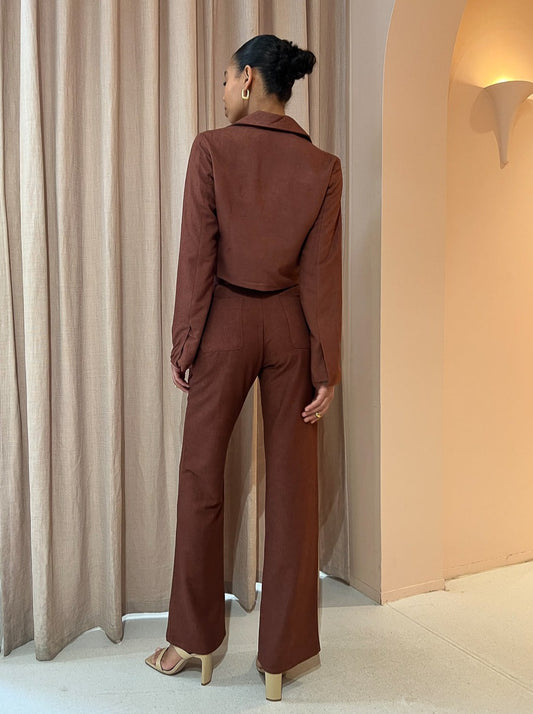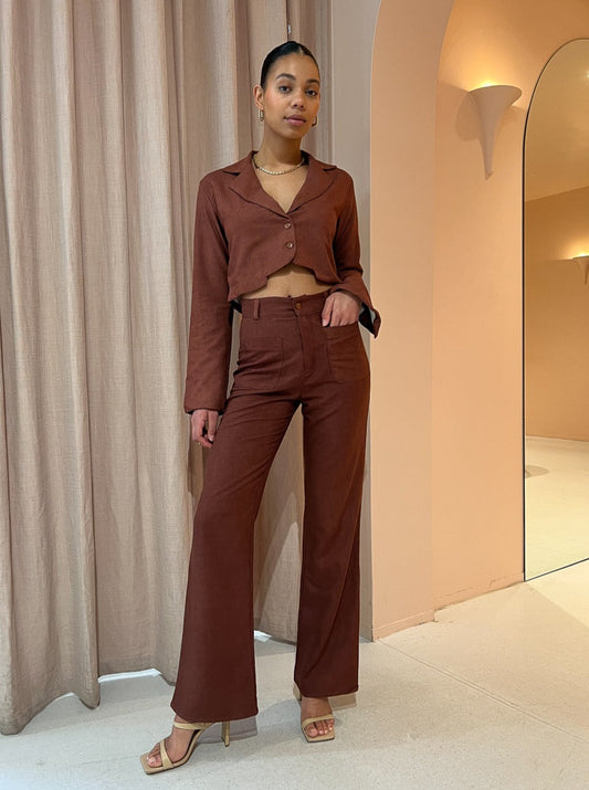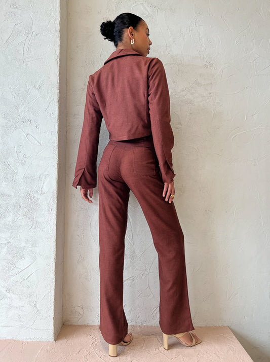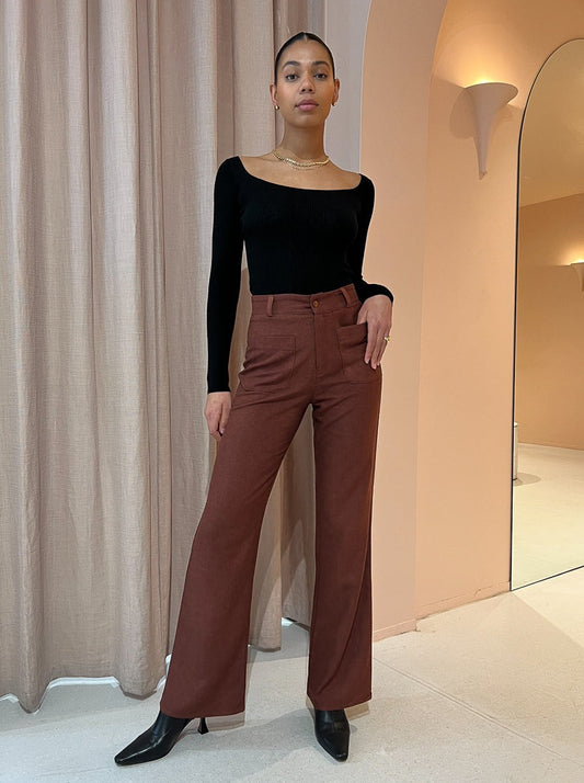 Bring earthy tonal elegance to your wardrobe with Savannah Morrow’s Jada Pant in Mahogany.