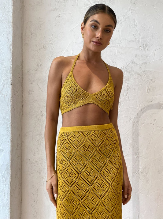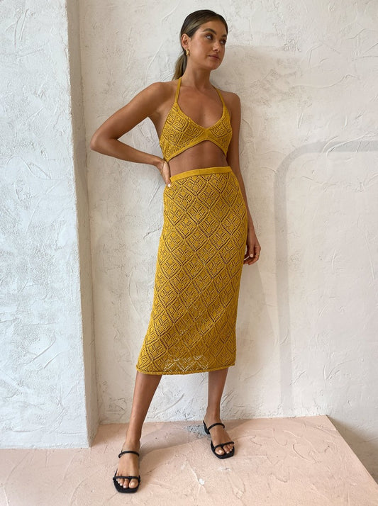 Savannah Morrow have swept us of our feet and carried us away to an eternal paradise destination with the intricately designed Jamaica Crochet Skirt in Mango.