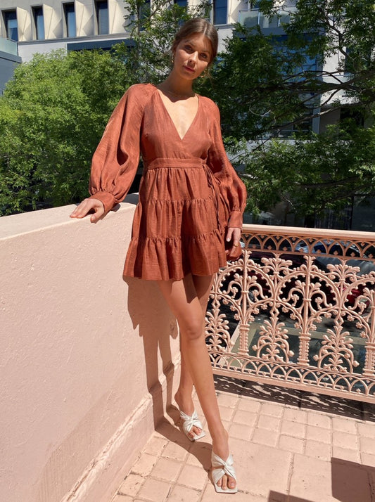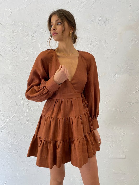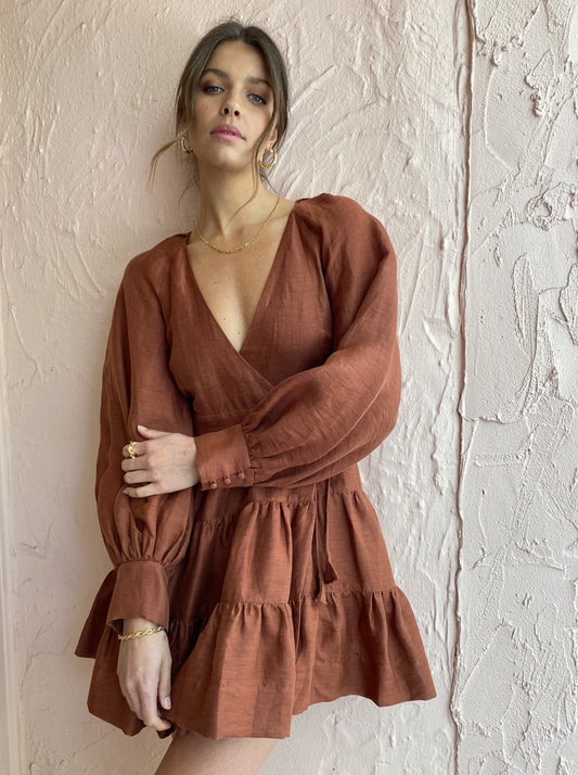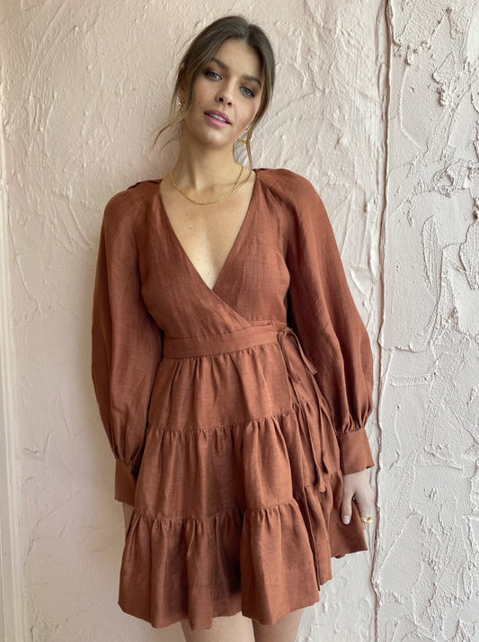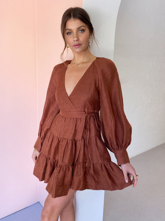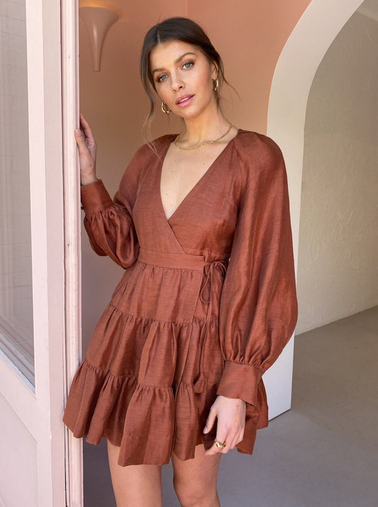 The Shona Joy Elsa Wrap Mini Dress in Gingerbread, is a timeless piece to add to your wardrobe.
