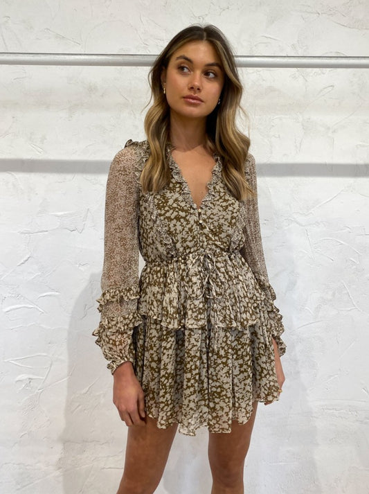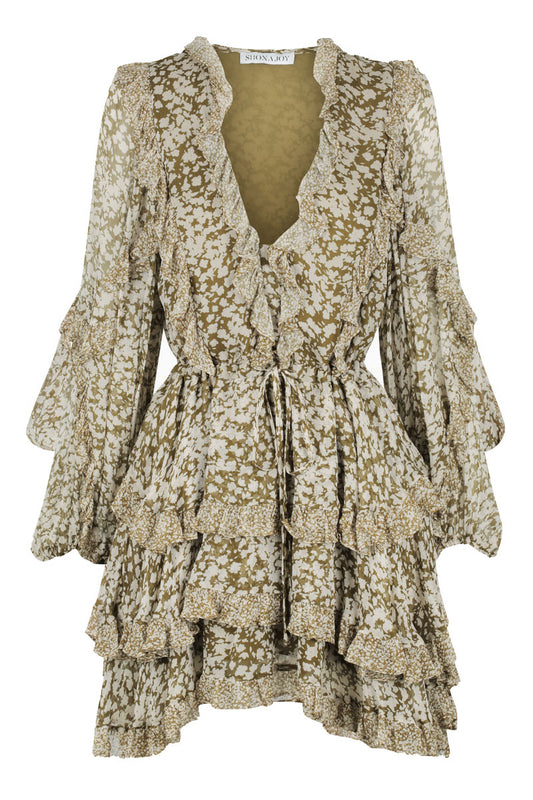 Cut from a soft and floaty Viscose this signature mini silhouette with ruffles and tiered gathering adds soft movement to glide through every special occasion with.