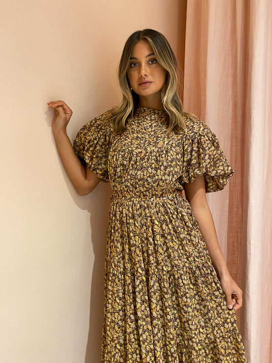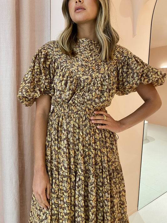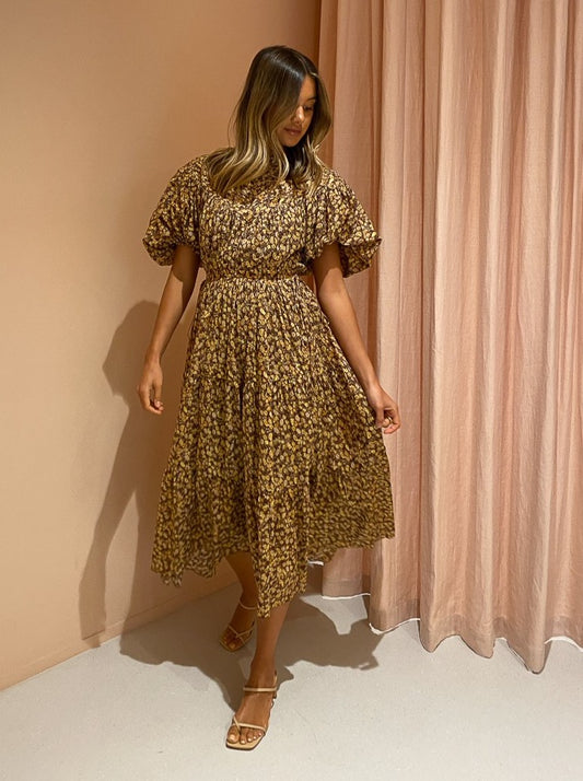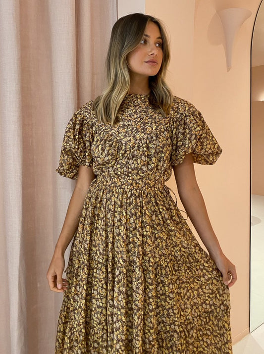 Relaxed and floaty, this midi dress features a short soft balloon sleeve and delicate pintuck details through the top.
