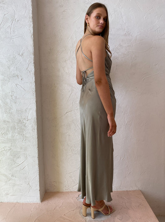 Adored for its earthy Sage hue and lace up detail at the exposed back, the La Lune Gathered Square Neck Dress will see you through formal soirees, birthday celebrations and twilight cocktails.