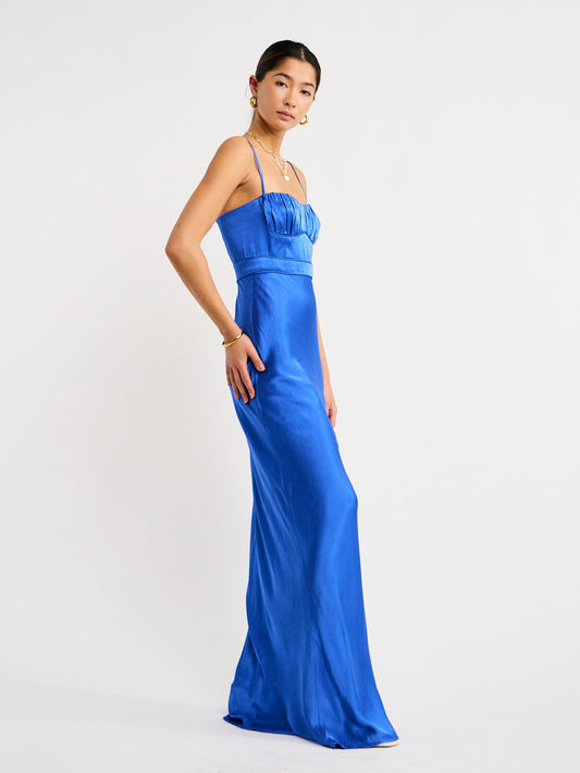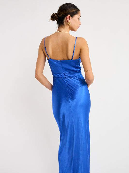 Indulge in luxury with the Oliviera Ruched Maxi Dress in Strong Blue by Shona Joy.