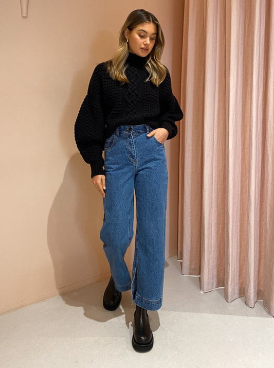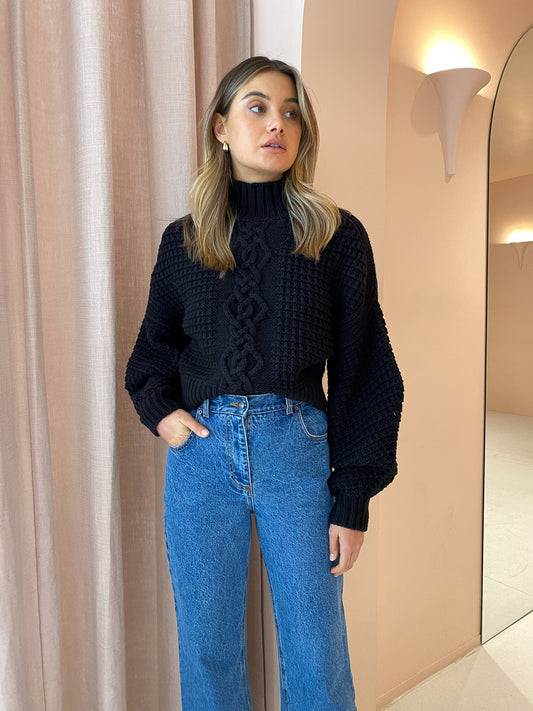Indulge in the luxe detailing of the Piper Cable Jumper in Black from Shona Joy.