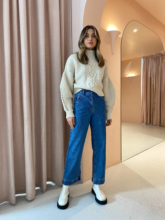 Coco Styling Tip: For your next ladies lunch, pair the Piper jumper with the Shona Joy Emily Straight Leg Jean W. Split in Indigo and the Alias Mae Cam Boot in Bone