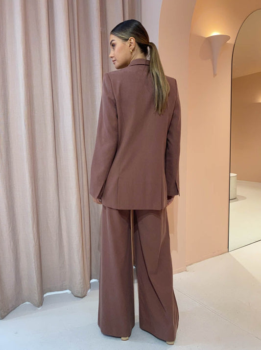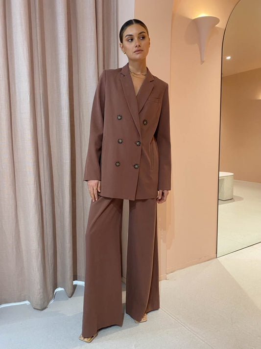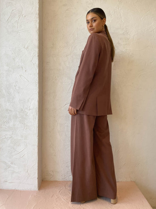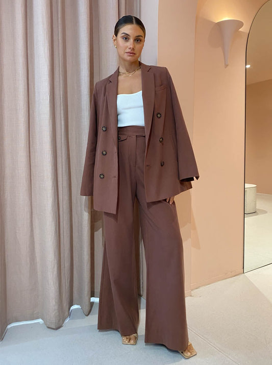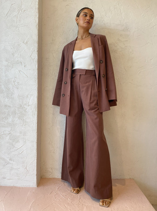 Shona Joy’s Sara Wide Leg Pants in Chestnut are a season-less go-to for effortless sophistication.