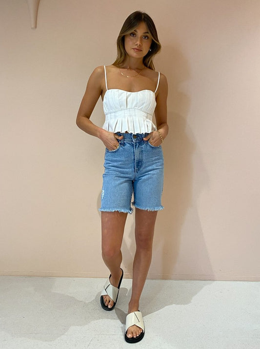 Coco Styling Tip: Wear on repeat with Nobody Tyler Short in Denim, Alias Mae Solaris Sandal in Bone, Porter Belcher Bracelet and Marsh Ring in Gold.