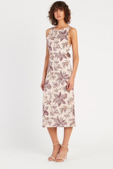A silk poplin midi dress, fitted through bodice with tie detail at back. Crafted from 100% silk, what we love most about this one is the exclusive SIR print.