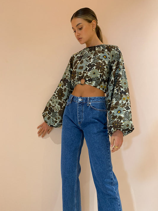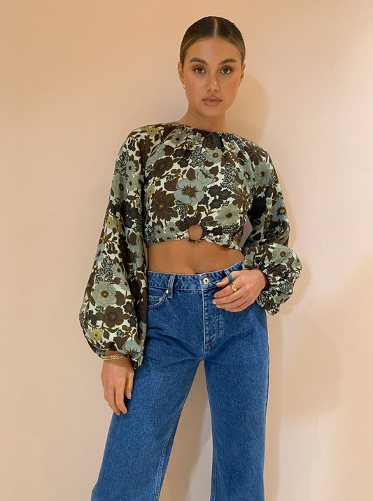 For a chic ensemble compete with the SIR. Constantine Gathered Top in Constantine Print, Alias Mae Lani Boot in Black, Porter Heritage Bracelet in Gold and Porter Tear Drop Huggies in Gold