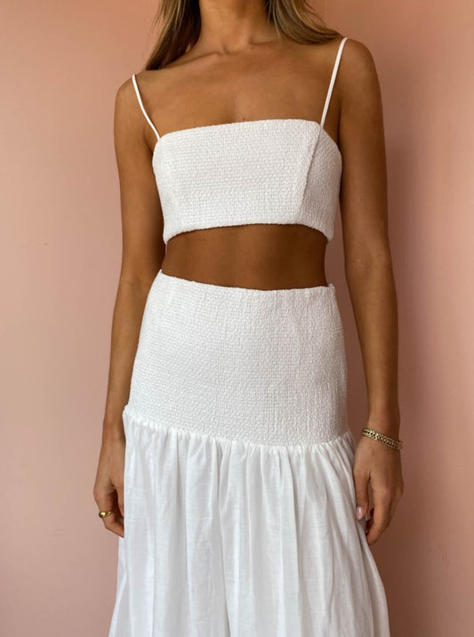 Complete the set with the matching Diana Crop Top in Ivory, styling with the Alohas Slip On Cross Sandals in Ivory and Porter Heritage Bracelet in Gold