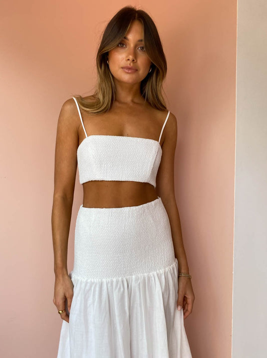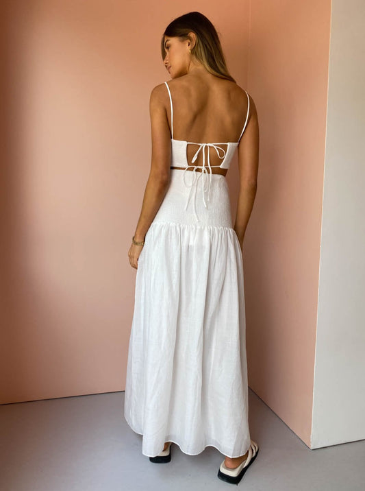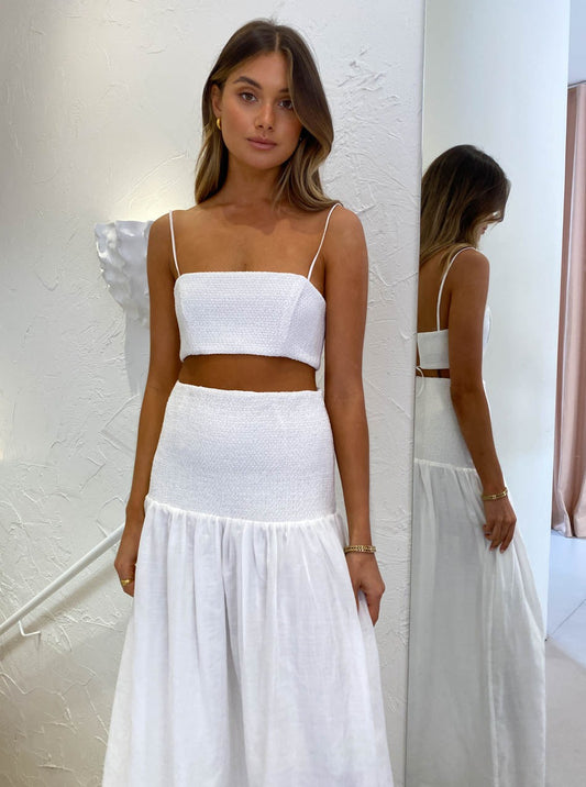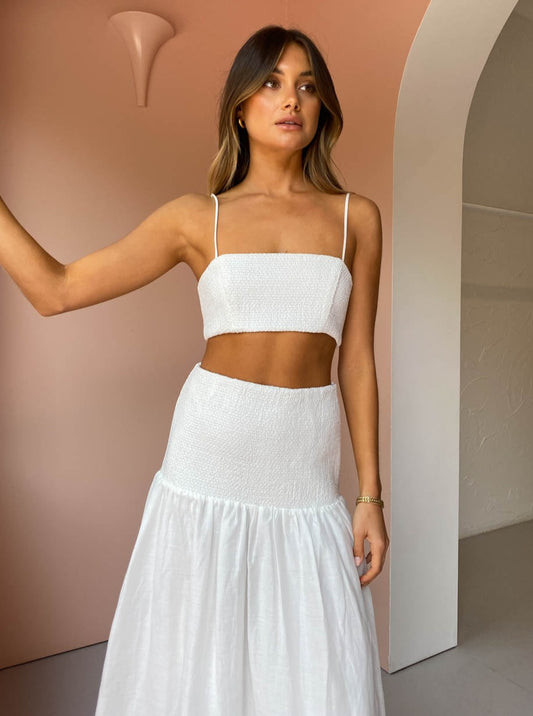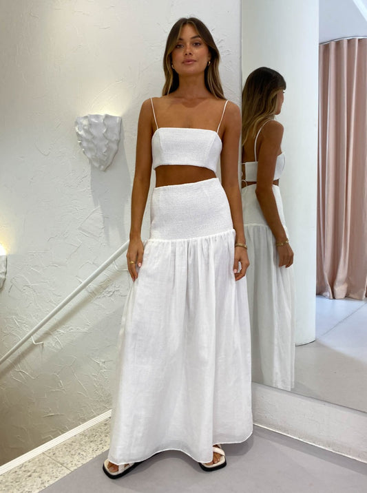 Elevating the Diana with its smocked panel and flattering drop waist design, Coco girls are coveting this maxi skirt for desk to dusk dressing and luxurious getaways.