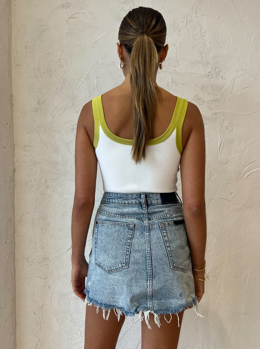 This bodysuit has been crafted in a compact knit with a deep scoop neckline that features contrasting citrus bind and fixed straps. Designed to shape and form the body.