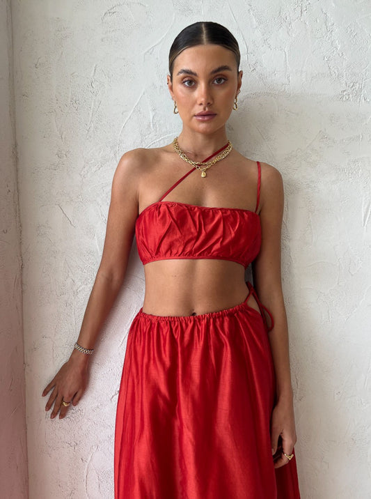 Indulge your inner romantic with the minimalistic design of SIR.’s Lucelia Crop in Red.