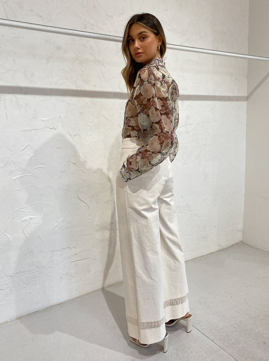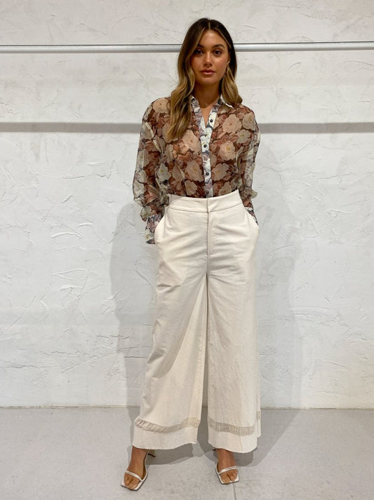 Crafted from a chic Italian Cotton, these high waisted pants with concealed fly, side seam pockets and wide leg silhouette have been designed to be worn with ease for effortless styling.