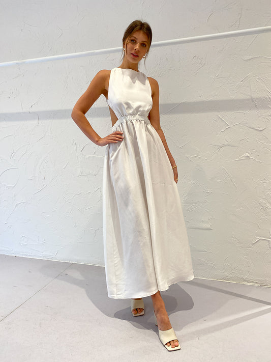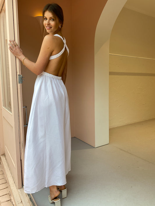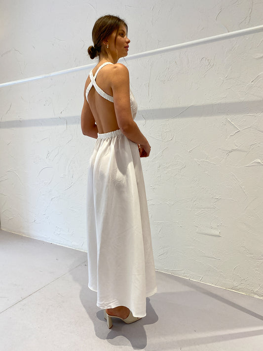 Featuring a standout open back and back cross over detailing, this dress will be perfect for your engagement party, birthday celebration or long lunch.