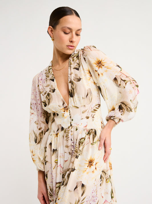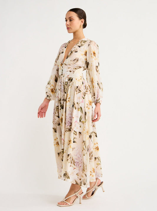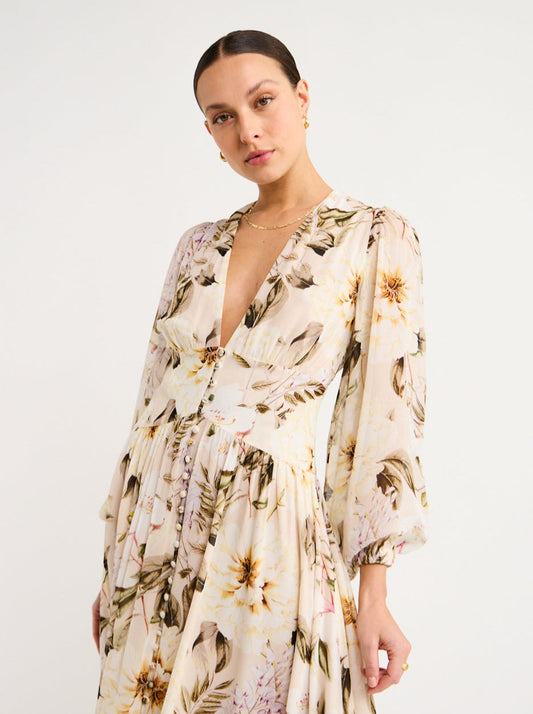 Sofia The Label Capri Sheer Midi Dress in Flora Print