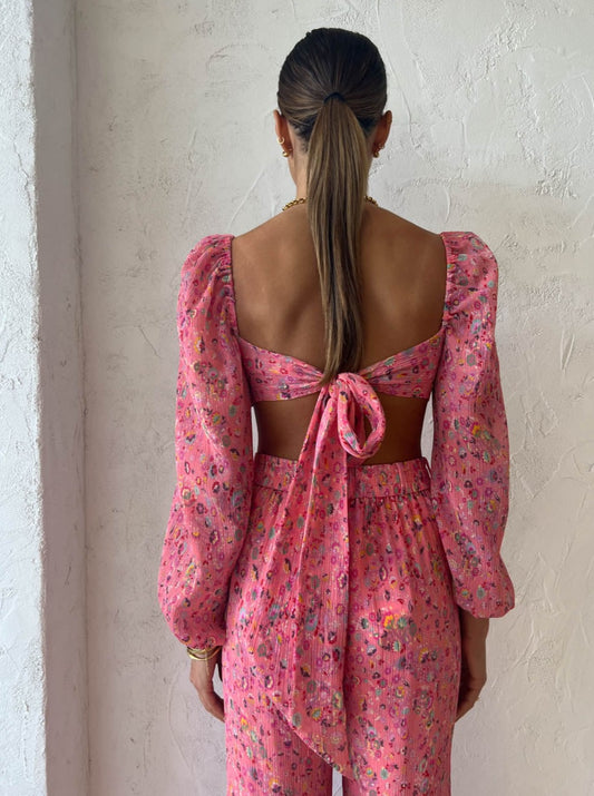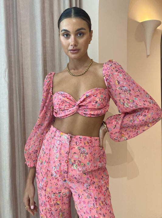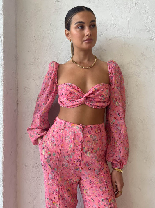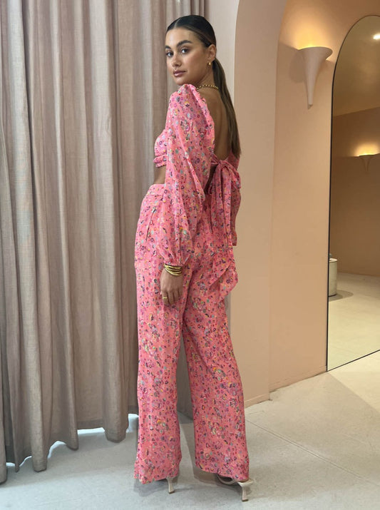 Styled with the matching Charlotte Tie Back Crop Top or a tank, their Ditsy Pink Floral print will brighten your day to night Coco styling year round.
