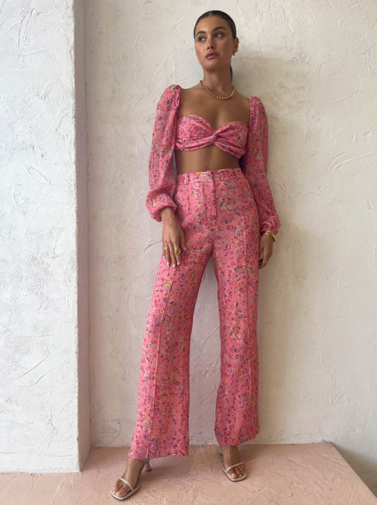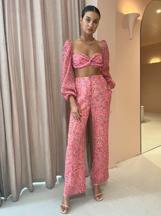 Love is in the air with the arrival of the romantic Charlotte High Waist Trouser in Ditsy Pink Floral from Sofia.